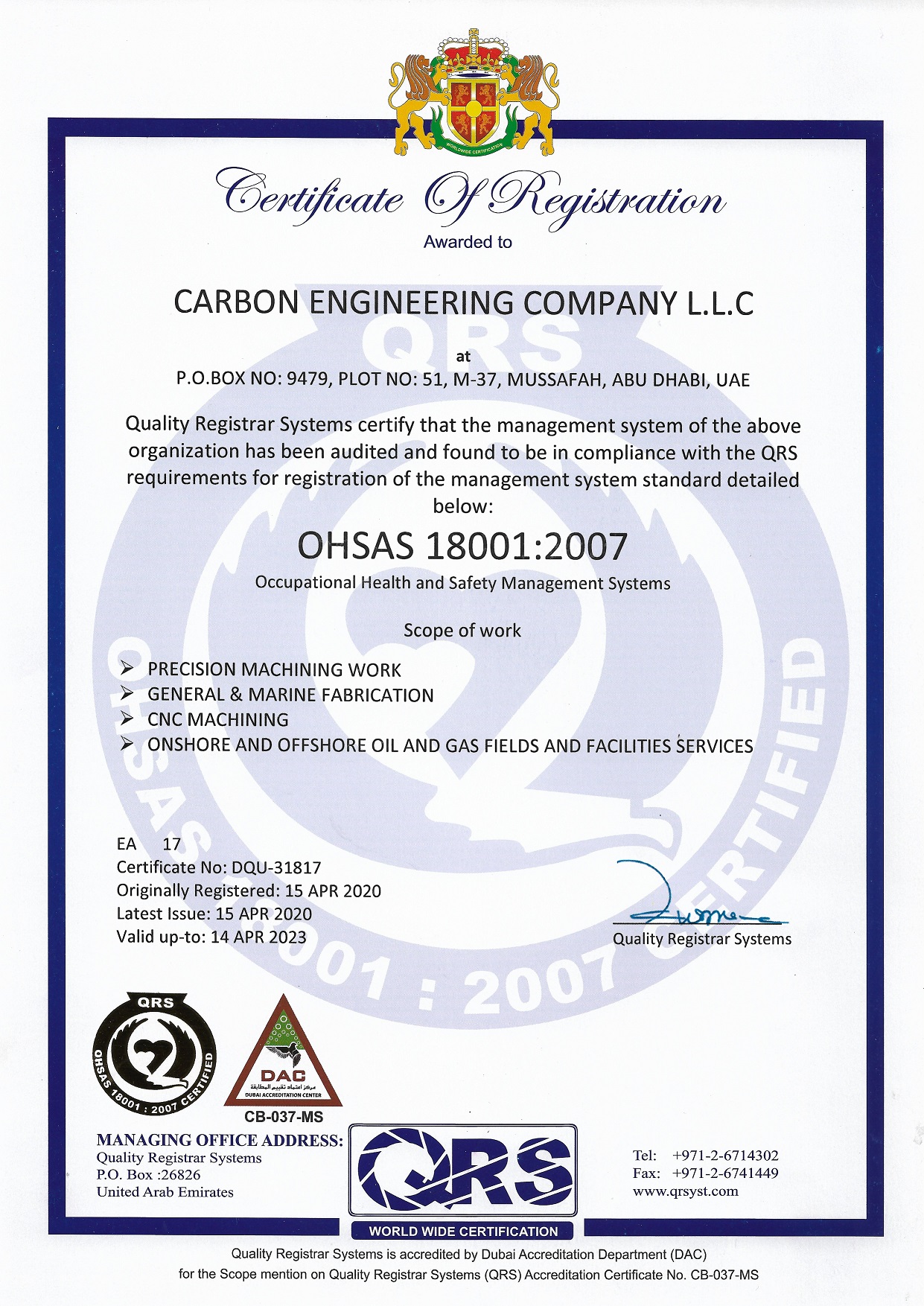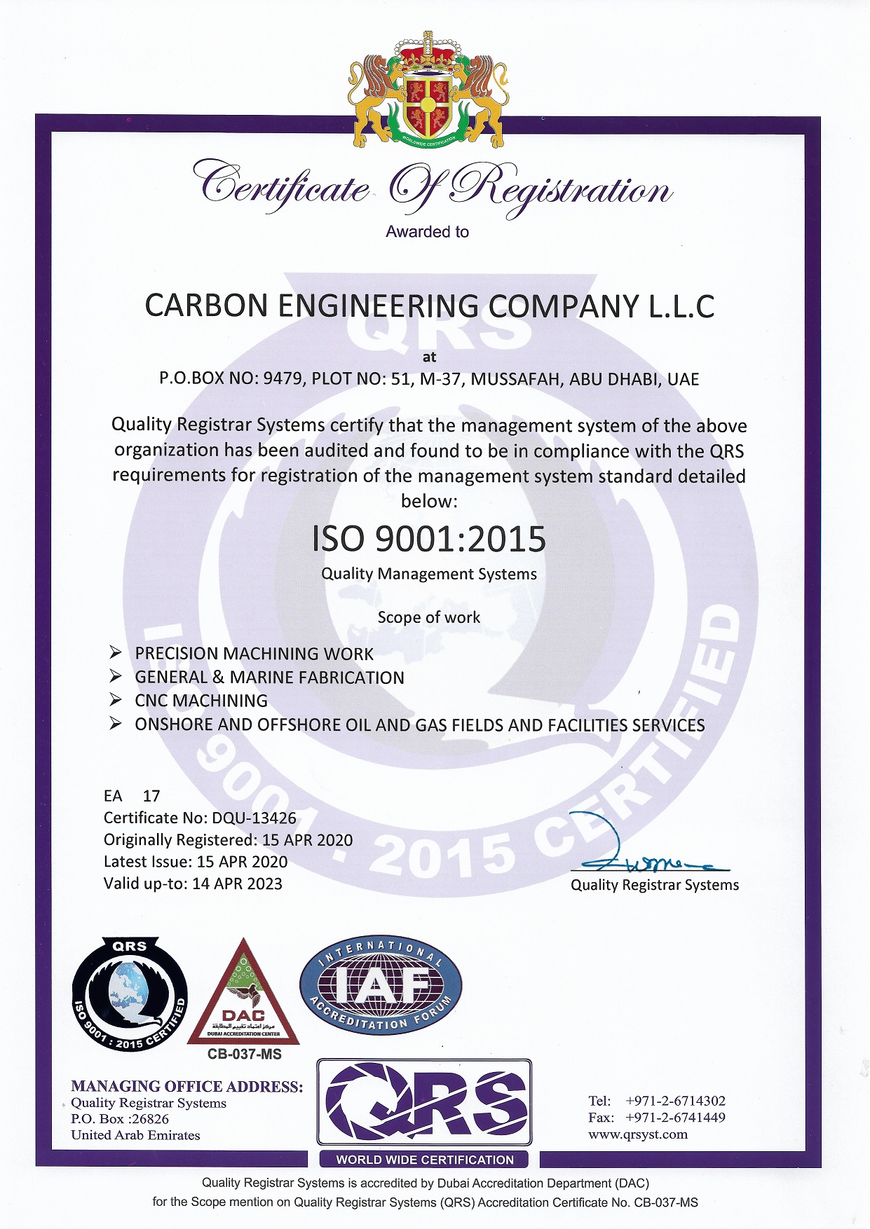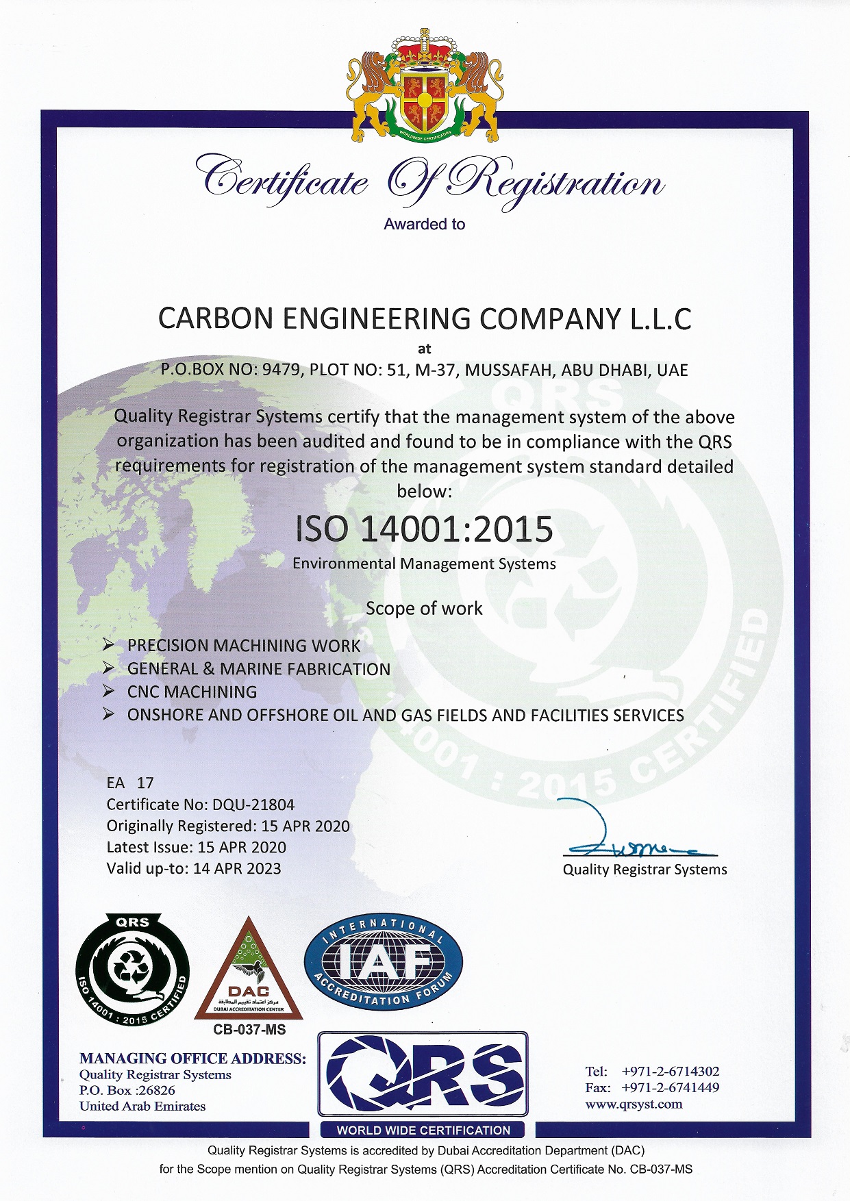 CARBON ENGINEERING Company L.L.C (CEC), Abu Dhabi.